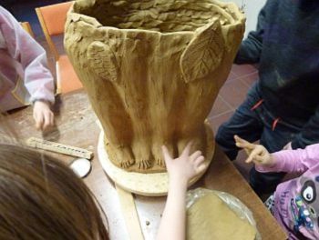 Seit Februar 2015 haben Kinder zusammen mit der Künstlerin Birigit Wiemann eine erste Figurengruppe gestaltet: Adam, Eva und die Schlange. Im Oktober und November hatten sie sich mit den Geschichten auf den ersten Seiten der Heiligen Schrift beschäftigt und diese Geschichte aus dem 1. Buch Mose, Kapitel 3 ausgesucht, um sie nun in Ton zu gestalten.