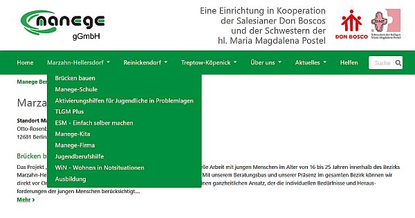 Hier ein Blick auf die Webseite der Manege gGmbH - eine Einrichtung beider Orden als Träger der verschiedensten Projekte: Brücken bauen, Manege-Schule, Aktivierungshilfen für Jugendliche in Problemlagen, TLGM Plus ESM - Einfach selber machen, Manege-Firma, Jugendberufshilfe, Win- Wohnen in Notsituationen, Ausbildung - eine stattliche Liste! Es gäbe also noch viel mehr hier zu sehen und darüber zu berichten.