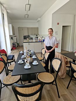 Wir wurden von Pauline Heinke mit Kaffee und Tee empfangen und kamen schnell mit einander ins Gespräch, hatten doch auch wir in Marzahn/Nord mehr als 25 Jahre lang einen wöchentlichen Offenen Kaffeetreff, gegründet 1994 um die neu zuziehenden Russlanddeutschen willkommen zu heißen.