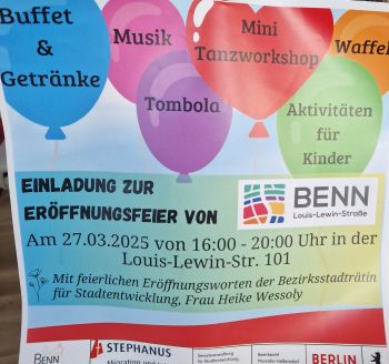 BENN ist die Abkürzung von "Berlin entwickelt Neue Nachbarschaften" für ein Programm des Berliner Senats, dass 2017 begann. Eigene Räume konnte das Team hier in Hellersdorf aber erst im Dezember 2024 beziehen, nachdem es schon seit 2023 in Kooperation mit dem Stadtteilzentrum Hellersdorf-Ost und der nahe gelegenen Gemeinschaftsunterkunft für Geflüchtete der milaa gGmbH aktiv war.
