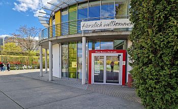 Hier ist der Eingang der Schule, die einen "integrierten berufsausbildungsvorbereitenden Abschluss (IBA)" ermöglicht und zwar drei unterschiedliche Schulabschlüsse in jeweils einem Jahr: