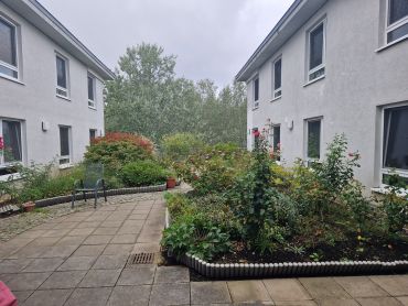 Von der Straßenbahnhaltestelle U-Bahn Hellersdorf gelangt man durch den Park hinter der U-Bahn-Brücke geradewegs zu diesem 1999 eingeweihten Haus, in dem 41 Bewohner*innen mit vorwiegend geistiger Behinderung im Alter von 21 bis 85 Jahren wohnen und mit viel Liebe und Engagement betreut werden.