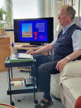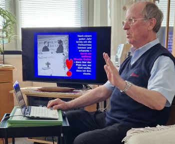 Mit einer Power-Point-Präsentation "Wunder werden wahr" erzählte uns Rolf Metzger von den Wundern in seinem Leben, zu denen gehört, wie er zur Heilsarmee gekommen ist und was er dort erlebte. Das erste Wunder aber ist für ihn, dass er als kleines Kind nicht durch die Bombardierung Essens umgekommen ist, sondern dank einer Erkrankung rechtzeitig evakuiert wurde.