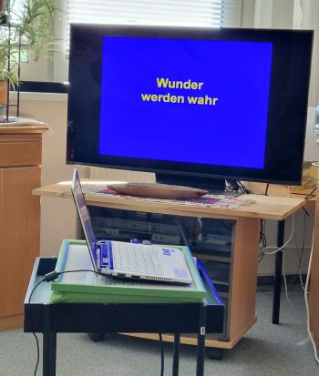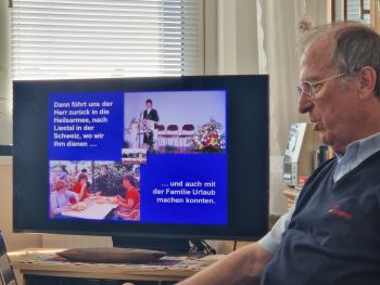"Und heute?" wird auf dem Bildschirm gefragt und geantwortet: "Dass wir auch im sogenannten Ruhestand unserem Herrn dienen können, dass ist das vorerst letzte Wunder Gottes an uns."