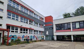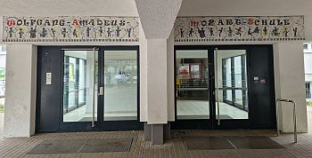 Die Mozart-Schule liegt mitten in einem ruhigen Hellersdorfer Wohngebiet. Wir Marzahner, an der Bushaltestelle Spremberger Straße angekommen, mussten erst mal etwas suchen und fragen, ehe wir sie fanden.