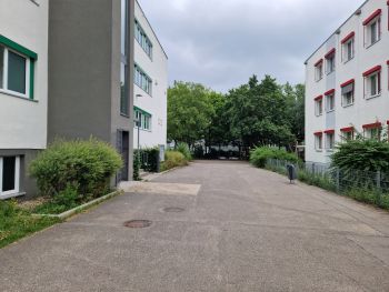 Dort vorbei geht es weiter, denn dahinter befindet sich ein weiterer Schulbau mit zwei Eingängen.