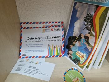 "Der Weg ins Ehrenamt" - steht auf diesem als Brief gestalteten Heftchen u.a. der Freiwilligenagentur Marzahn-Hellersdorf. 35 ehrenamtliche Helfer sind es hier, die diese Lebensmittelausgabe für zurzeit 700 Hilfsbedürftige organisieren. Doch rd.300 stehen auf der Warteliste und würden sich freuen, kommen zu können! Aber für sie reichen zurzeit weder die Spenden noch die Kräfte. Vor allem wird dringend ein Sponsor für einen neuen Transporter und ein Fahrer für diesen gesucht. Denn das sehen wir auch: die hier ehrenamtlichen Mitarbeitenden sind zumeist Rentner und auch oft selbst hilfsbedürftig. Irgendwann geht es dann nicht mehr, selbst wenn man es gerne möchte.