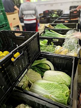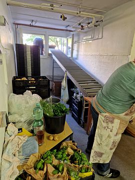 Das Gemüse kommt von den umliegenden Supermärkten und wird durch die Mitarbeiter dort abgeholt sowie von der Tafel Beusselstraße geliefert.